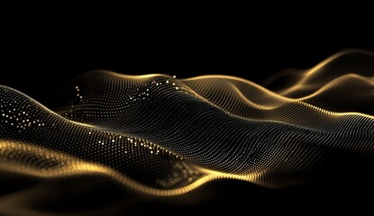 Golden data waves flowing on black background