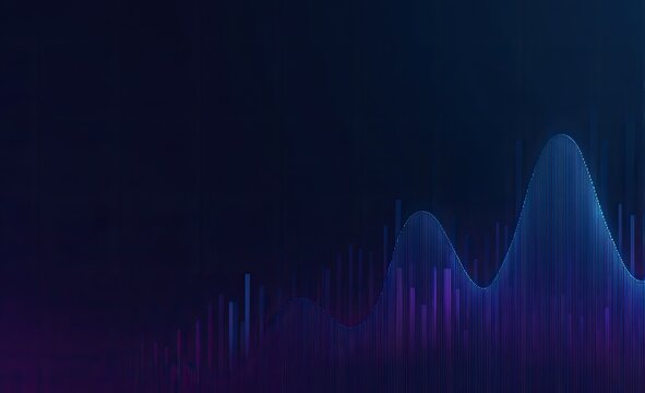 Abstract financial chart,  glowing blue bars on dark background