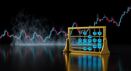 Golden Abacus with Glowing Blue Beads and Financial Data