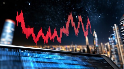 Red Financial Graph Over City Skyline at Night with Stars Background
