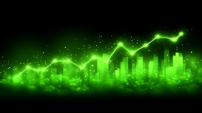 Abstract Green Growing Chart Over Night Cityscape Background