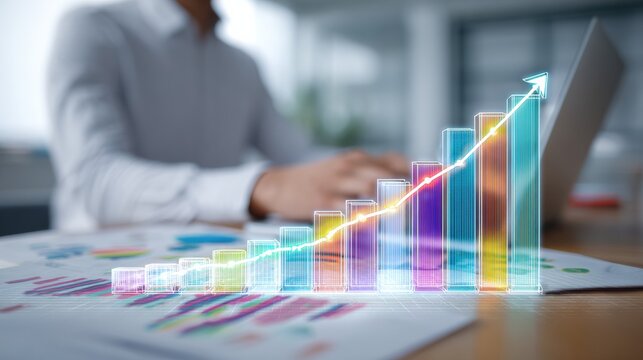 Vibrant 3D graph with multicolored bars and glowing effects analysis