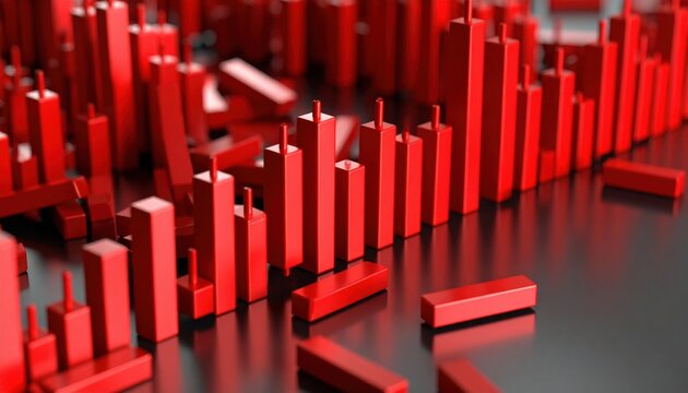 Shiny golden blocks form a stylized cityscape or data graph on dark surface