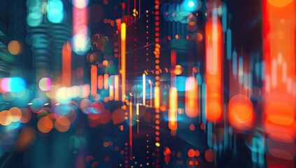 Abstract digital depiction of fluctuating financial data with bar charts and curved lines