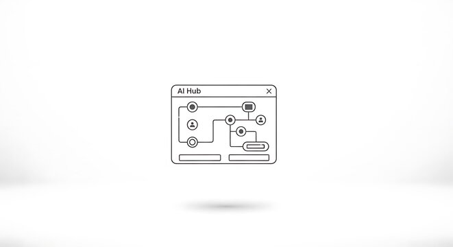 Ai hub interface with connected nodes and icons in a minimalist design on a clean white background
