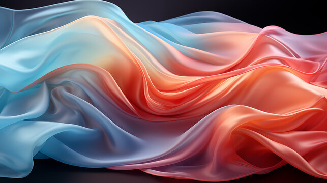 Abstract background with flowing silk material. Blue, red and violet color gradients and lights.