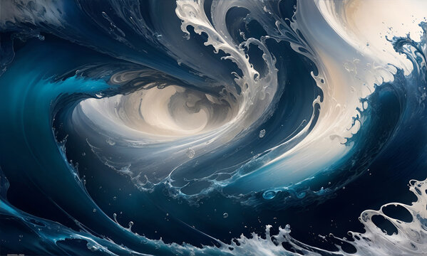Blue Big Waves Detailed Abstract Background, Ink Splash Liquid Painting, generative ai