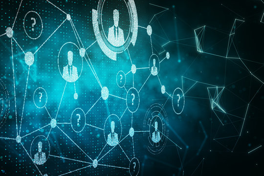 Photo of a man with blurred face outlined with dynamic cyber-themed graphics and digital elements
