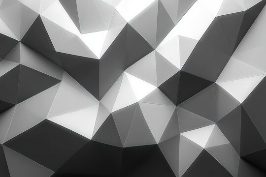 Abstract geometric background composed of interconnected monochrome triangular facets creating a faceted 3D illusion with varying shades of gray and white