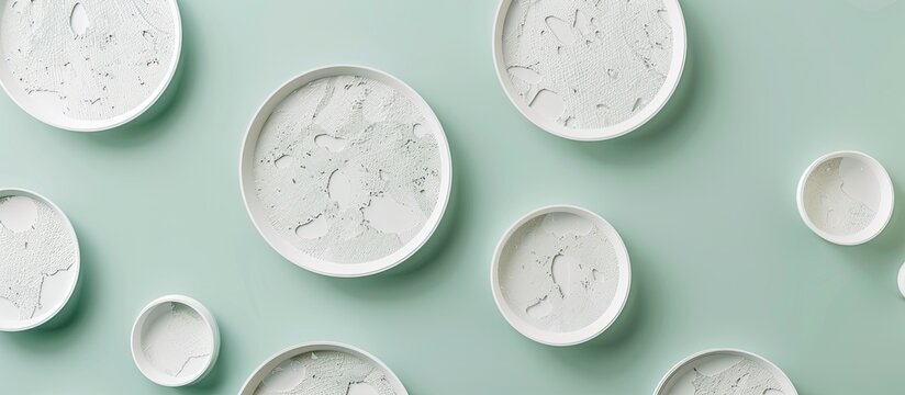 Circular geometric shapes in white with texture on a pastel green background designed for adding text in the copy space image