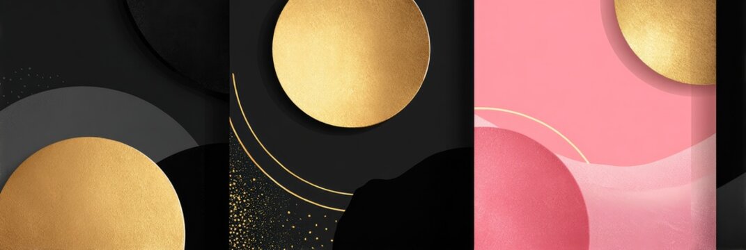 Vibrant abstract geometric shapes with dynamic patterns on dark
