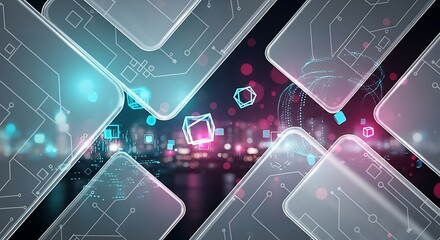Futuristic digital interface with neon geometric patterns