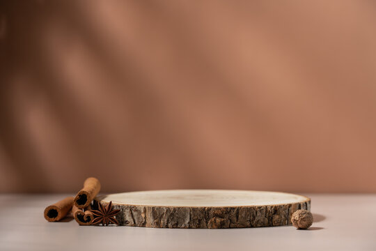 Generative AI : Minimalistic abstract gentle light beige background for product presentation with light andand intricate shadow