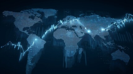 Global financial growth and market trends illustrated by upward bar chart and world map