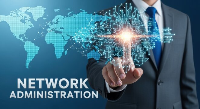 Global Network Connection: Businessman Activating Digital Interface Representing Worldwide Communication and Technology Infrastructure