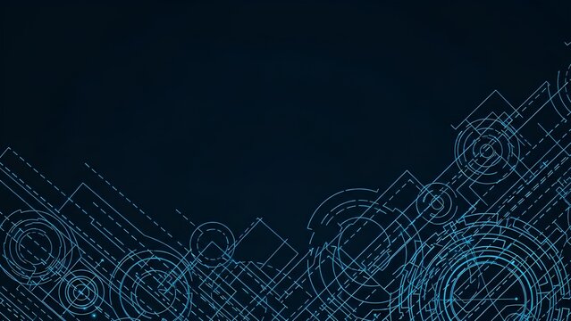 Dynamic abstract blueprint background featuring intricate geometric patterns, interconnected lines, and glowing circular elements, symbolizing innovation, data, and advanced technology