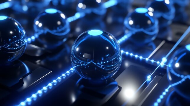 Interconnected network of glowing nodes, a visualization of advanced technology with cool colors