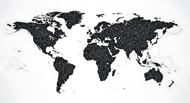 Circuit board design featuring a digital world map in brown, orange, and black colors showcases technology and global connectivity