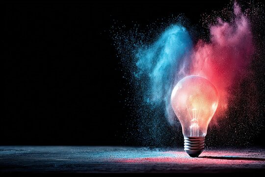 Glowing Blue Particle Cloud Explosion on Dark Blue Background