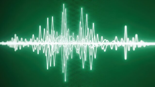 Glowing green waveform graphic displays abstract sound pulse