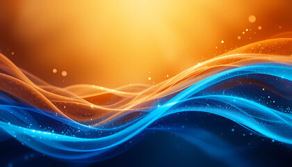 Abstract background featuring flowing orange and blue waves with sparkling light effects