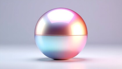 A glossy sphere reflects a soft gradient of colors, split into two halves, on a white surface