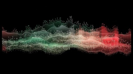Abstract green digital waves illuminated with dots