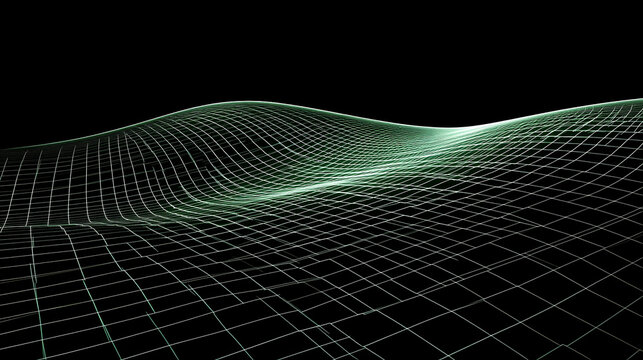 Abstract Wireframe Landscape with Neon Green Grid on Black Background