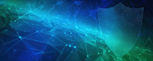 A digital abstract image featuring a glowing shield overlay on a network of interconnected lines, symbolizing cybersecurity and protection.