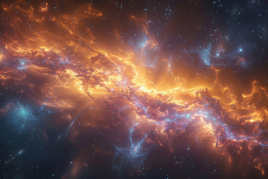A cosmic collision between galaxies, a cataclysmic event shaping the fabric of the universe over billions of years. Concept of galactic evolution. Generative Ai.