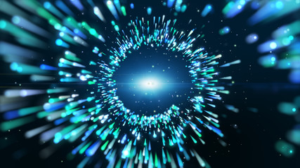 Spiral of Blue and Green Lights with Glowing Effect in a Dark Cosmic Background