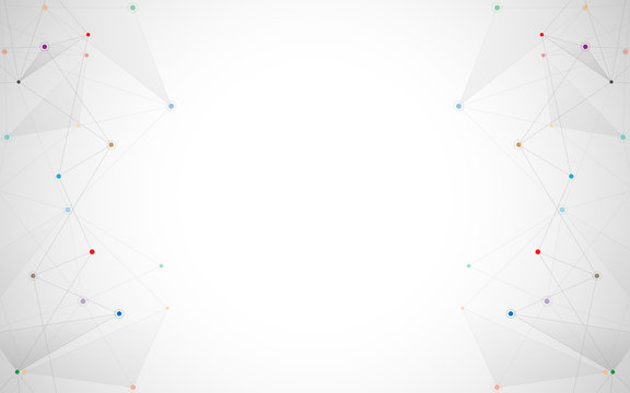 Geometric abstract background with connected dots and lines. Molecular structure and communication. Digital technology background and network connection.