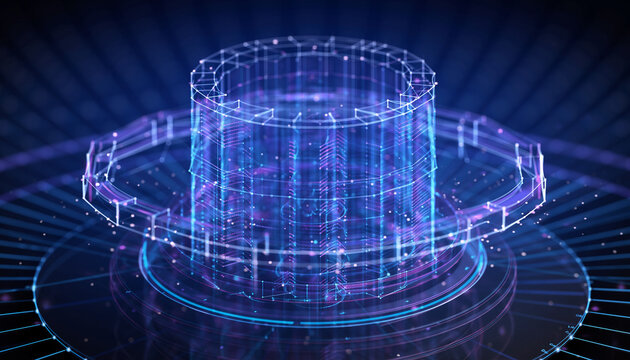 Digital Data Hub: An illuminated digital construct pulses with energy, visualizing the complex connections of a modern data hub.