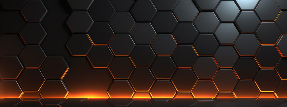 Abstract background with dark gray and orange hexagon tiles
