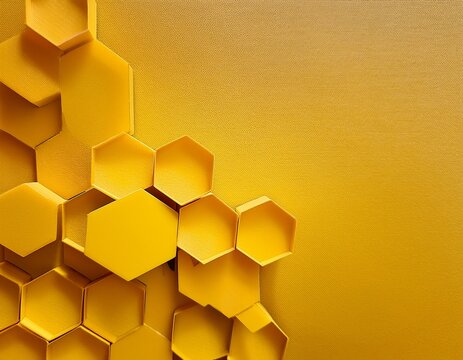 abstract 3d hexagonal honeycomb wall backdrop business web design geometric hexagon texture isolated on yellow background banner long with copy space