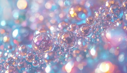 Iridescent soap bubble cluster macro with pastel prism reflections and glitter shimmer