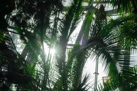 Abstract palm leaf shadow with radiant light effects