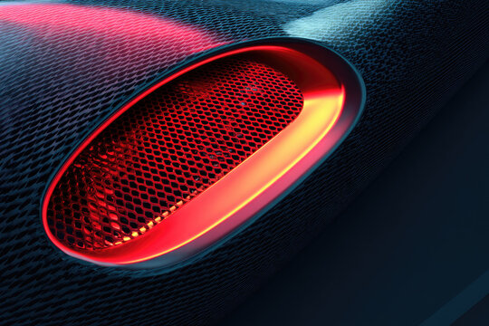 Sci fi inspired orbital drop pod design features futuristic mesh texture and glowing red light creating dynamic and high tech atmosphere