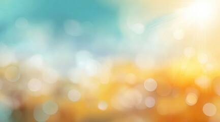 Abstract image featuring out-of-focus circular light spots in soft yellow hues over a blue and dark background. Includes ample copy space
