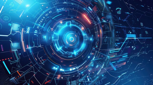 Futuristic digital interface with scanning scope and light trails
