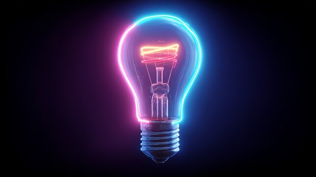 Stunning neon lightbulb illustration radiating vibrant futuristic energy, perfect for innovative tech concepts and creative marketing designs