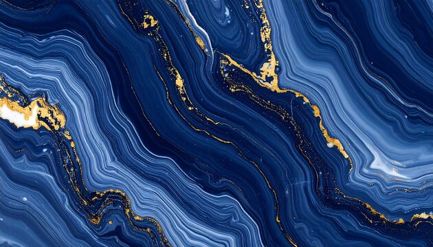An abstract swirl of dark blue shades with flowing lines interwoven with gold veins creating a luxurious and artistic textured appearance