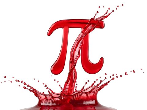 Red liquid splashing pi mathematical symbol on white background
