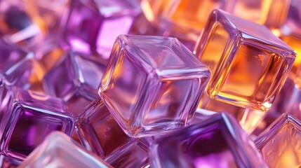 Neatly Aligned Glossy Cubes. Violet and Orange, Futuristic Tech Background. 3D Render.