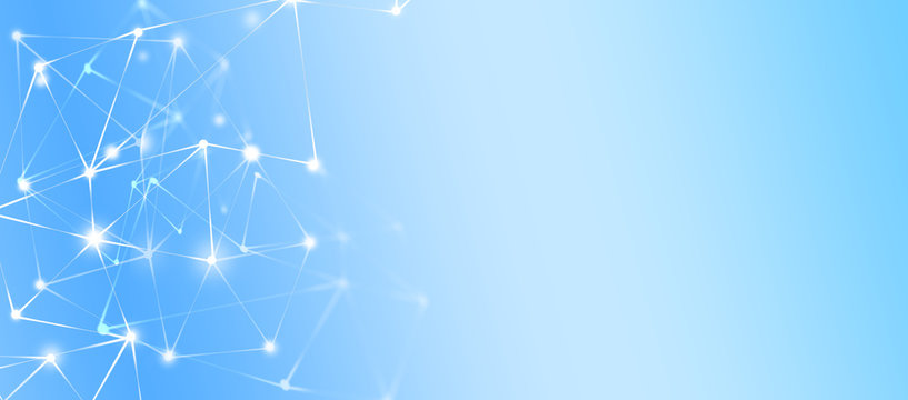 Abstract background Dot and connect line for cyber technology futuristic and network connection concept with dark and grain processed wide screen ratio.