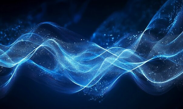 Abstract blue tech background with digital waves, dynamic network system, artificial neural connections, cyber quantum computing and electronic global intelligence, futuristic digital glow data points