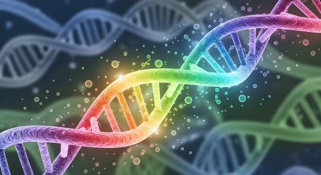 Abstract Colorful Rainbow DNA Double Helix 3D Illustration with Glowing Effects