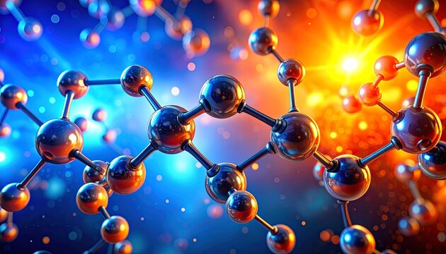 The stylized depiction showcases a 3D rendering of a molecular structure, highlighted with a gradient of colors and metallic textures.