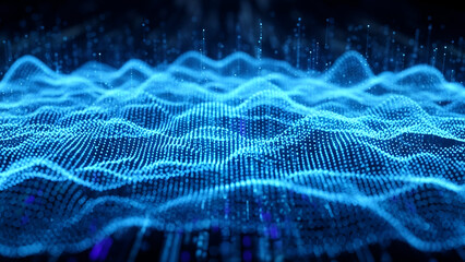 Vibrant image of blue molecules connecting in a network symbolizing connectivity and scientific advancements