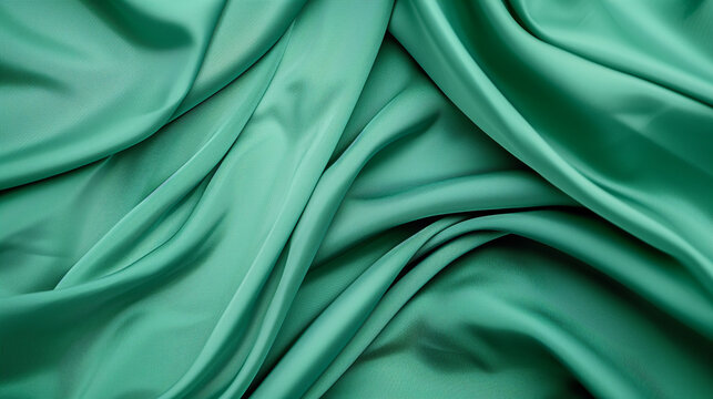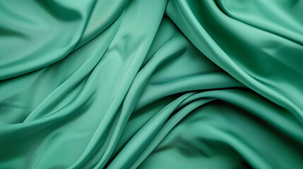 Abstract green background with layers of silk folded drapery